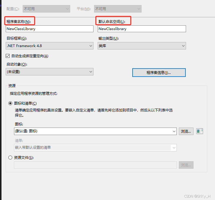 修改程序集名称以及默认命名空间为: "NewClassLibrary"。