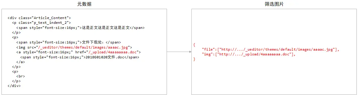 我爬正文数据下来时是整个正文元素直接获取的,所以也就在这里筛选出正文中的附件和图片