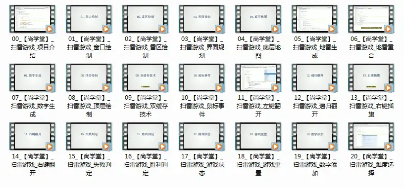 课程讲解了一个扫雷游戏的详细编写思路和流程,即使你刚学java没多久,只要你简单掌握了该游戏所需要的javaEE的基础知识,便可以跟随该教程视频完成属于你自己的俄扫雷游戏!同时,还可以加深和巩固你对java基础知识的理解。