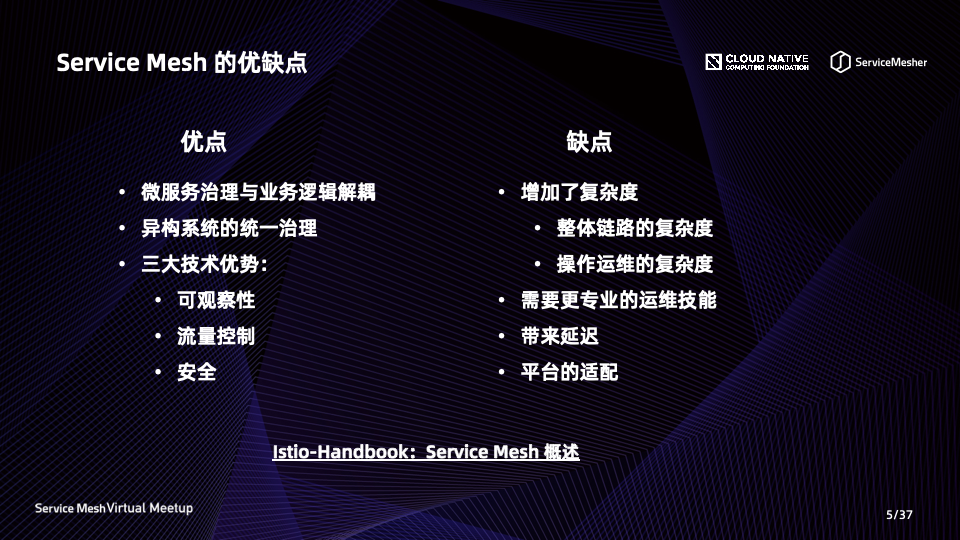 更多关于 Spring Cloud 与 Service Mesh 的优缺点与比较,请阅读 Istio-Handbook [Service Mesh 概述](链接见文末)。