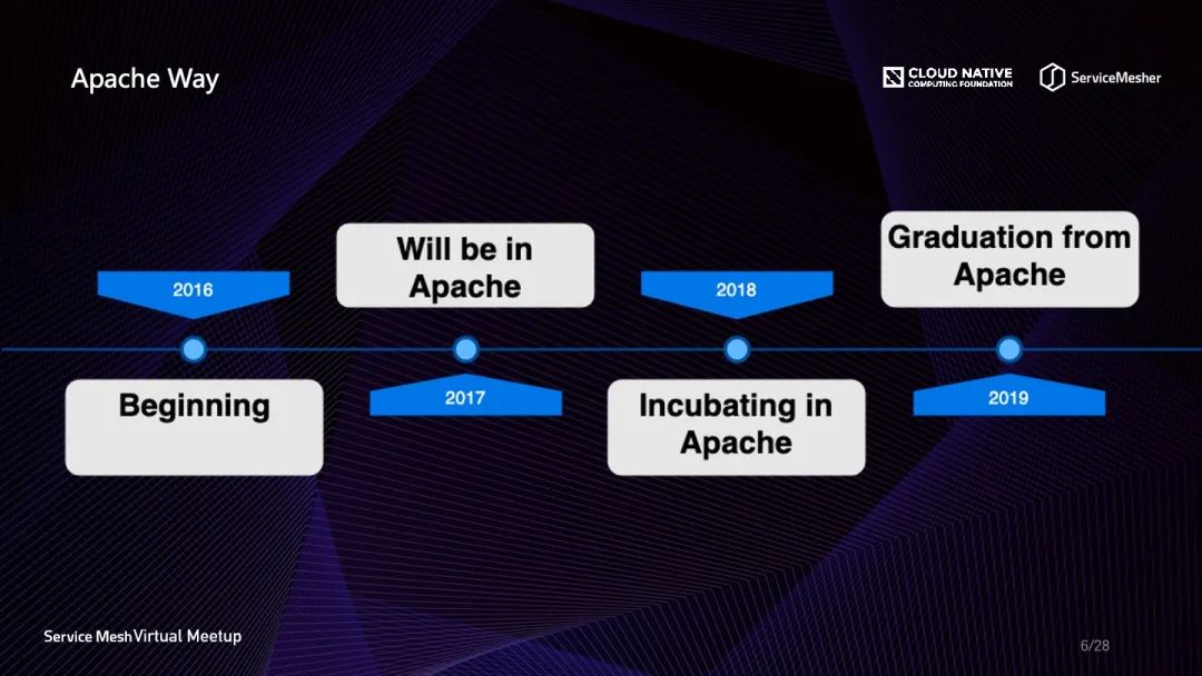 SkyWalking 项目的建设目的是为了解决在微服务环境下,如何快速的定位系统稳定性问题。创始团队于2016年启动项目,经过一年的努力完善了最初的版本。2017年,团队启动将项目捐献给 Apache 基金会的流程。在 Apache 基金会孵化器内,经过了多轮系统升级迭代,并获得近乎翻倍的贡献者和关注度,于2019年顺利毕业。经过经年的升级与维护,SkyWalking 从最开始专注于分布式追踪系统的单一平台,发展为包含多个门类并拥有丰富的功能的全领域 APM 系统。