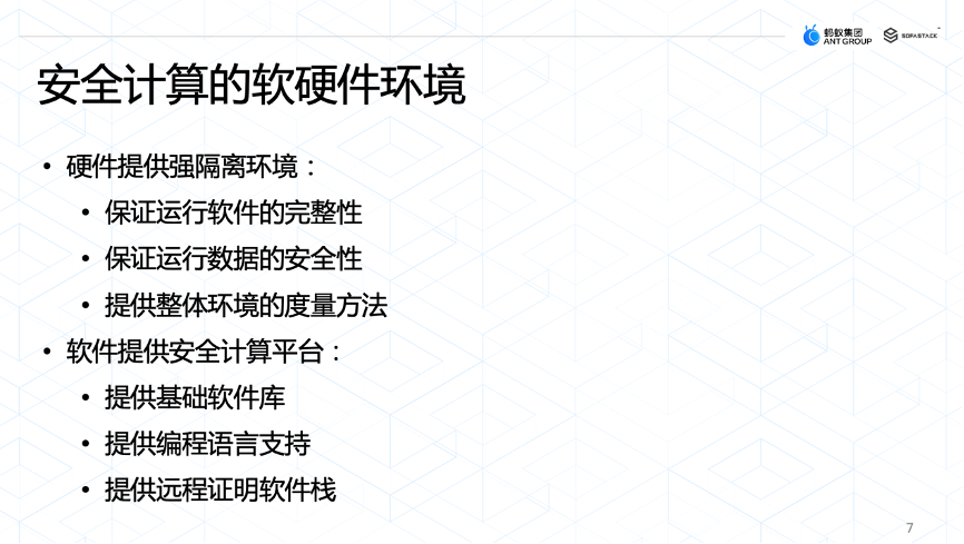 在边缘计算场景中,计算节点部署在非常复杂的环境中,机器不受控。安全计算可以有效地保护用户数据和隐私。
