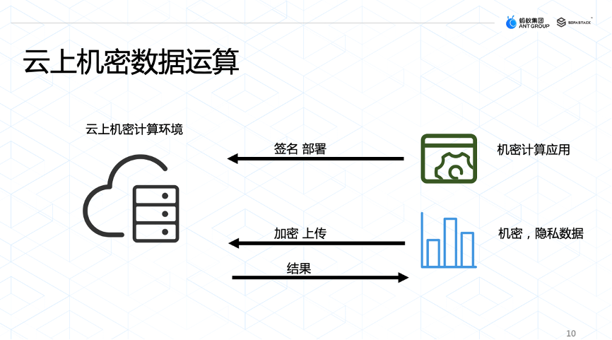 安全计算也可以促成更多的数据合作。各方数据可以在一个安全的环境中做融合运算,让数据产生更大的价值。