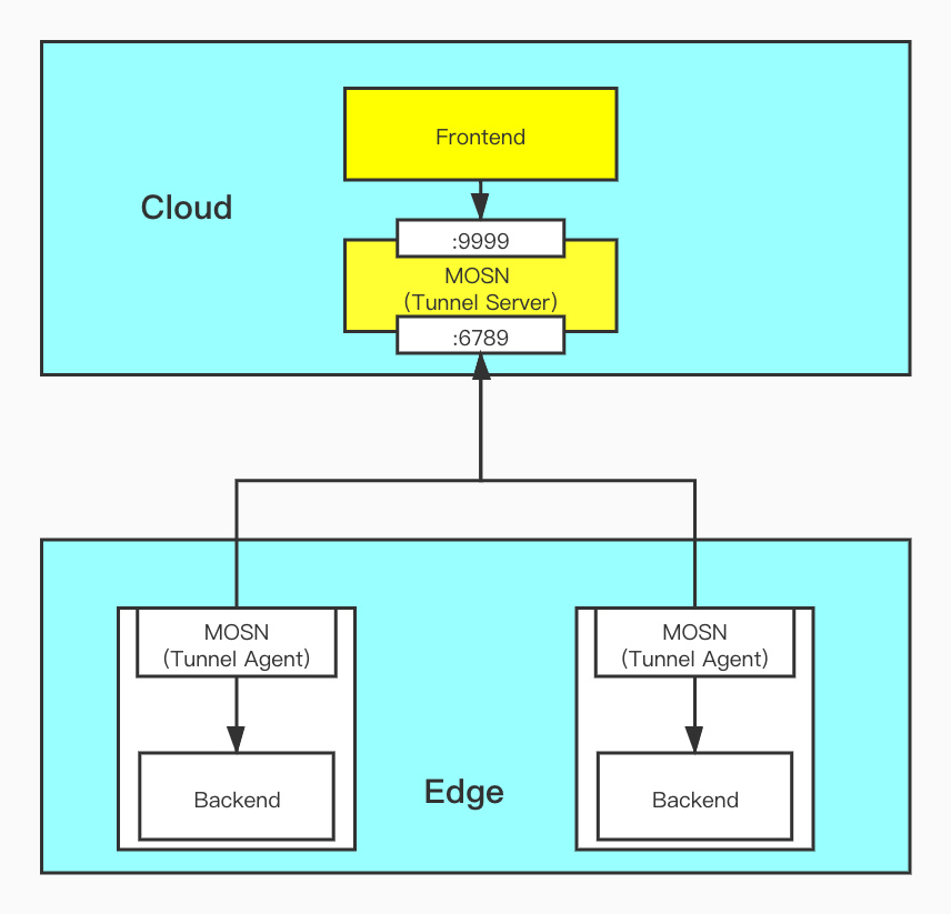 在云边协同的网络场景,通常都是单向网络,云侧节点无法主动发起连接与边缘节点通讯。这种限制虽然在极大程度上保证了边缘节点的安全,但缺点也很明显,即只允许边缘节点主动发起访问云端节点。
