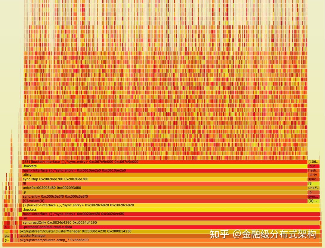 比如下图最宽的部分,表示的是 MOSN 中 cluster_manager 全局变量中引用的 cluster 内存对象: