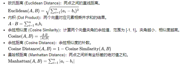 向量召回通过计算查询向量与索引中存储向量的相似度,选取最相似的文档。