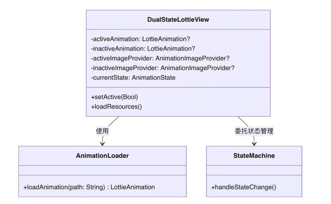 loadAnimation(path:)方法,返回加载完成的LottieAnimation对象。StateMachine:负责处理状态变化的逻辑;