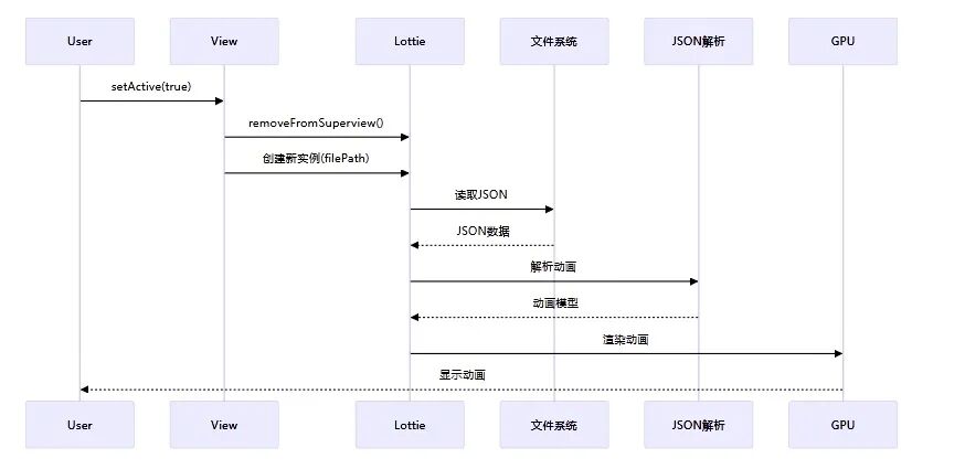 animationView,重新创建一个新的LottieAnimationView实例,并加载对应的动画资源;这种方式不仅会导致主线程卡顿,还会频繁地创建和销毁视图对象,进一步增加性能开销。