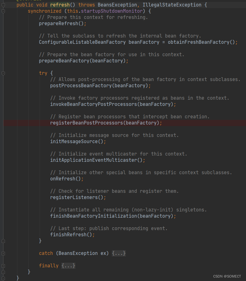 2.跟踪ClassPathXmlApplicationContext#refresh()方法。
