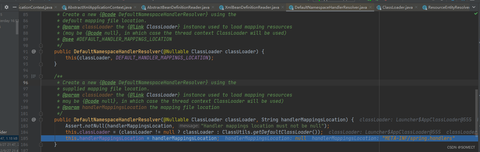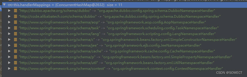 在写spring 加载spring.schemas时,不明白从哪里加载细节,我把代码调试出来。
