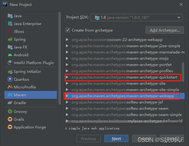 新建的项目选择以下两个骨架,第一个是传统的Java工程,第二个是web开发的工程