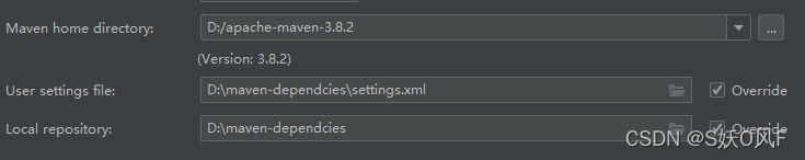 第二个配置的是setting配置文件的地址,我们上面已经将它复制到了依赖库文件中可以将地址指向依赖库;