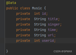 这层主要是和数据库对接的用户数据表,一张是user表、一张是music表,而收藏音乐的表不需要写,因为返回的变量不会是收藏音乐的整个表,因此不需要。