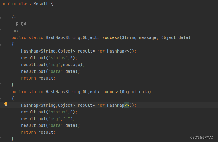 2. 统一数据返回,自定义Result类,将失败、成功的结果进行封装统一返回: