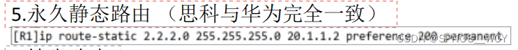 永久静态路由使用环境:静态路由会因为直连路由的原因会消失,这时候就不希望路由器因为这个静态路由消失,而学习其他新的路由加表,以至于引起路由环路等一些问题,所以使这个静态路由永久加表