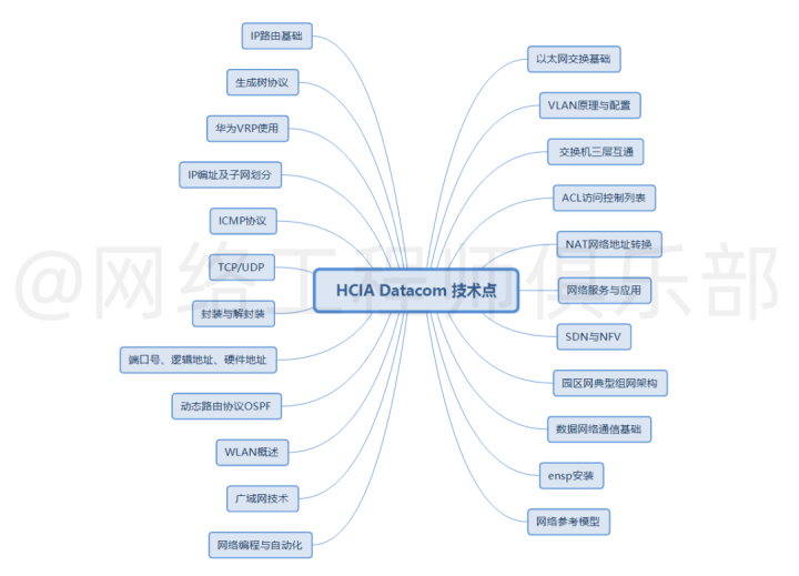 比如华为认证的HCIA初级课程,就可以满足你。它学啥技术,可以看这张图:
