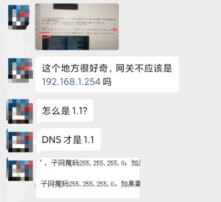 这位粉丝后面还有提问说,自己见到到多数的交换机设置的网关都是1.254,而不是1.1,所以才有这个问题。