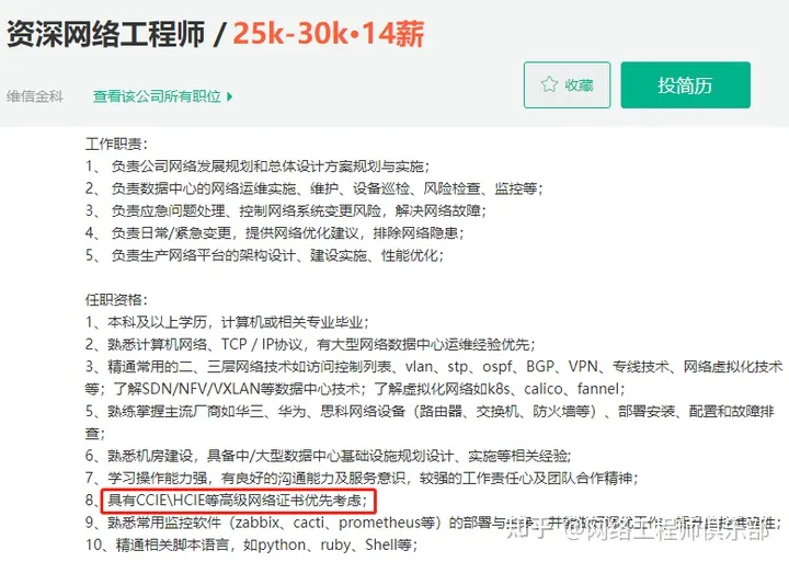 如果你想考CCIE/HCIE,大胆的去考就好,有了CCIE/HCIE的加持,你可以很轻松的获得大部分公司的面试通知。