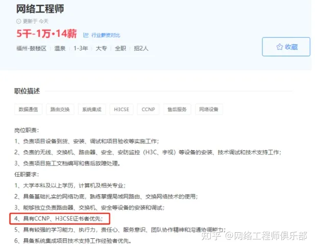 我随机截了一些网工岗位的招聘要求,可以看下,对IE证书有要求的岗位,他们的薪资水平大概在多少: