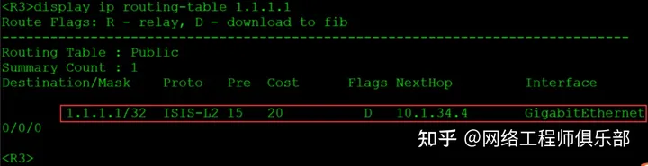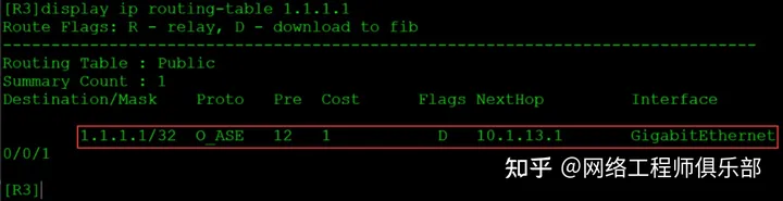 在修改完优先级数值之后,R3通过最优路径OSPF访问1.1.1.1/32,如下图所示: