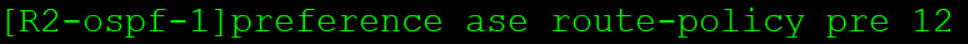 在R2上设置外部路由优先级数值时调用名称为“pre”的策略,即符合名称为“pre”策略的外部路由优先级数值为160,不符合名称为“pre”策略的外部路由优先级数值为12。