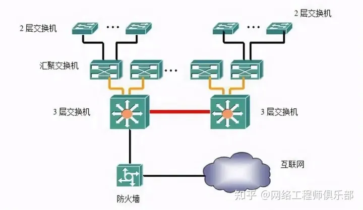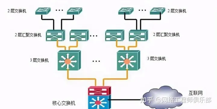 (可能有些数据需要经过所有的3层交换机,再算上经过2层接入交换机以及2层汇聚交换机的延迟,将导致数据转发延迟过大,从而导致网络速度的下降)。