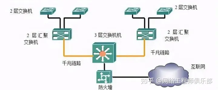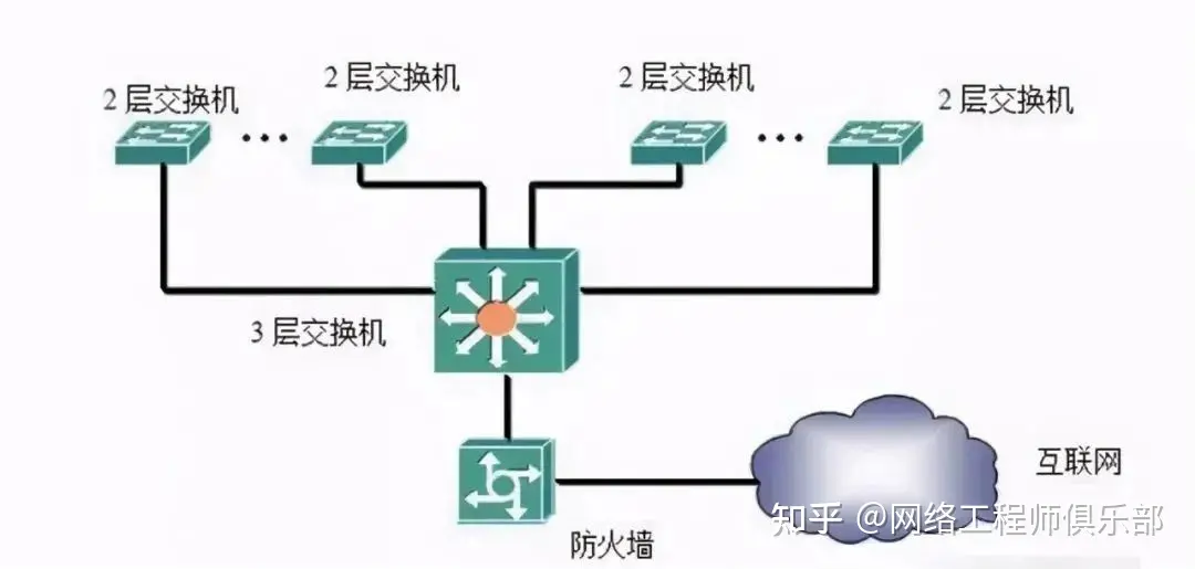 随着网络中用户数量的增加,你仍然可以使用2层交换机作为纯粹的接入设备,在图中增加一种设备(2层汇聚交换机)来进行汇聚。