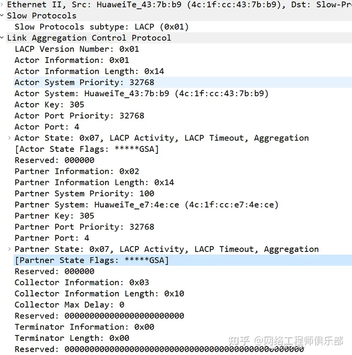 此时成员接口上便启用了LACP协议,两端互发LACPDU报文。