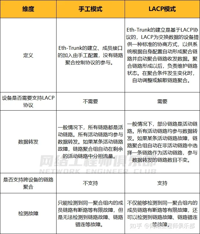 根据是否启用链路聚合控制协议LACP,链路聚合分为手工模式和LACP模式。