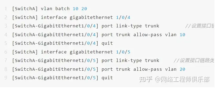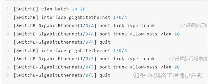 2、在SwitchA和SwitchB,创建VLAN并将接口加入VLAN