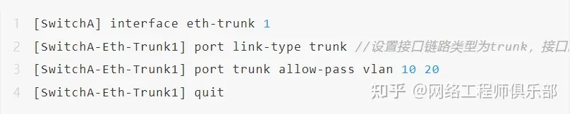 1、在SwitchA和SwitchB上创建Eth-Trunk接口并加入成员接口