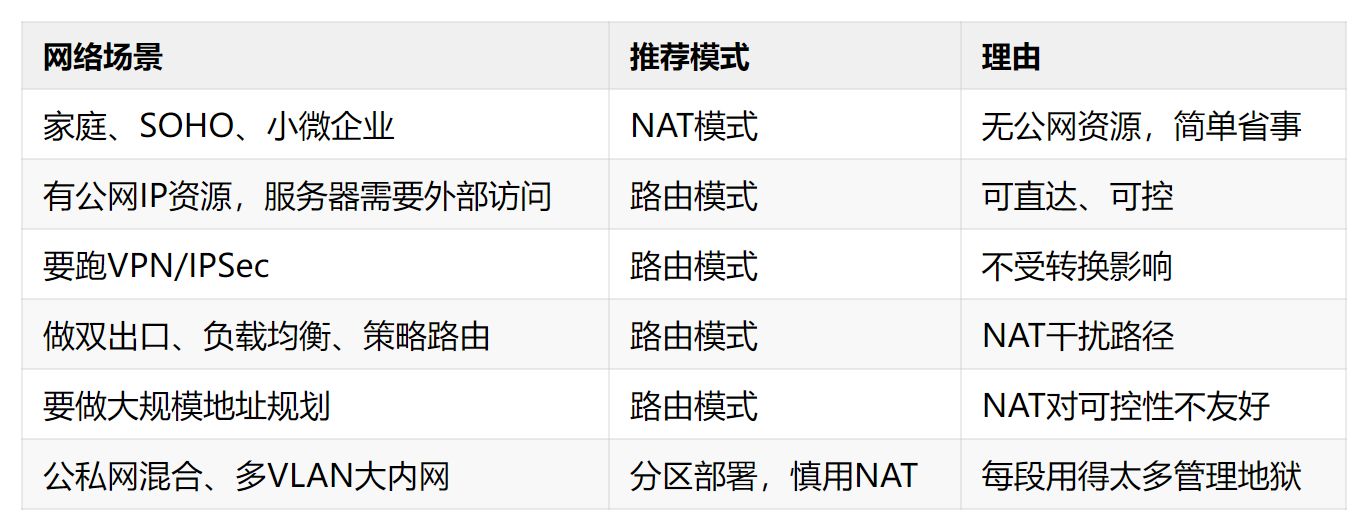 四、什么时候该用 NAT?什么时候该选路由模式?