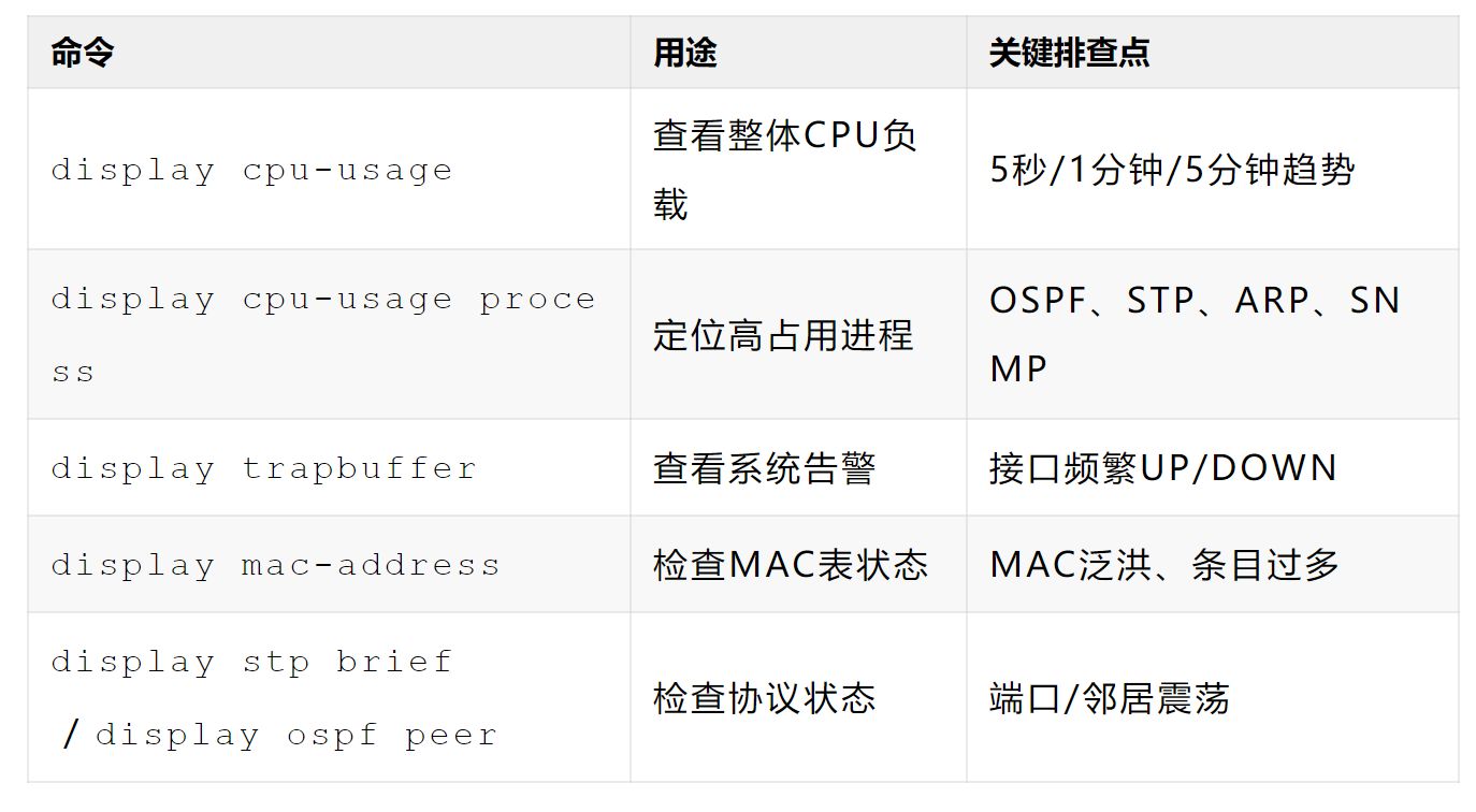 交换机CPU使用率过高是常见问题,可能引发响应缓慢、管理中断、甚至业务丢包。