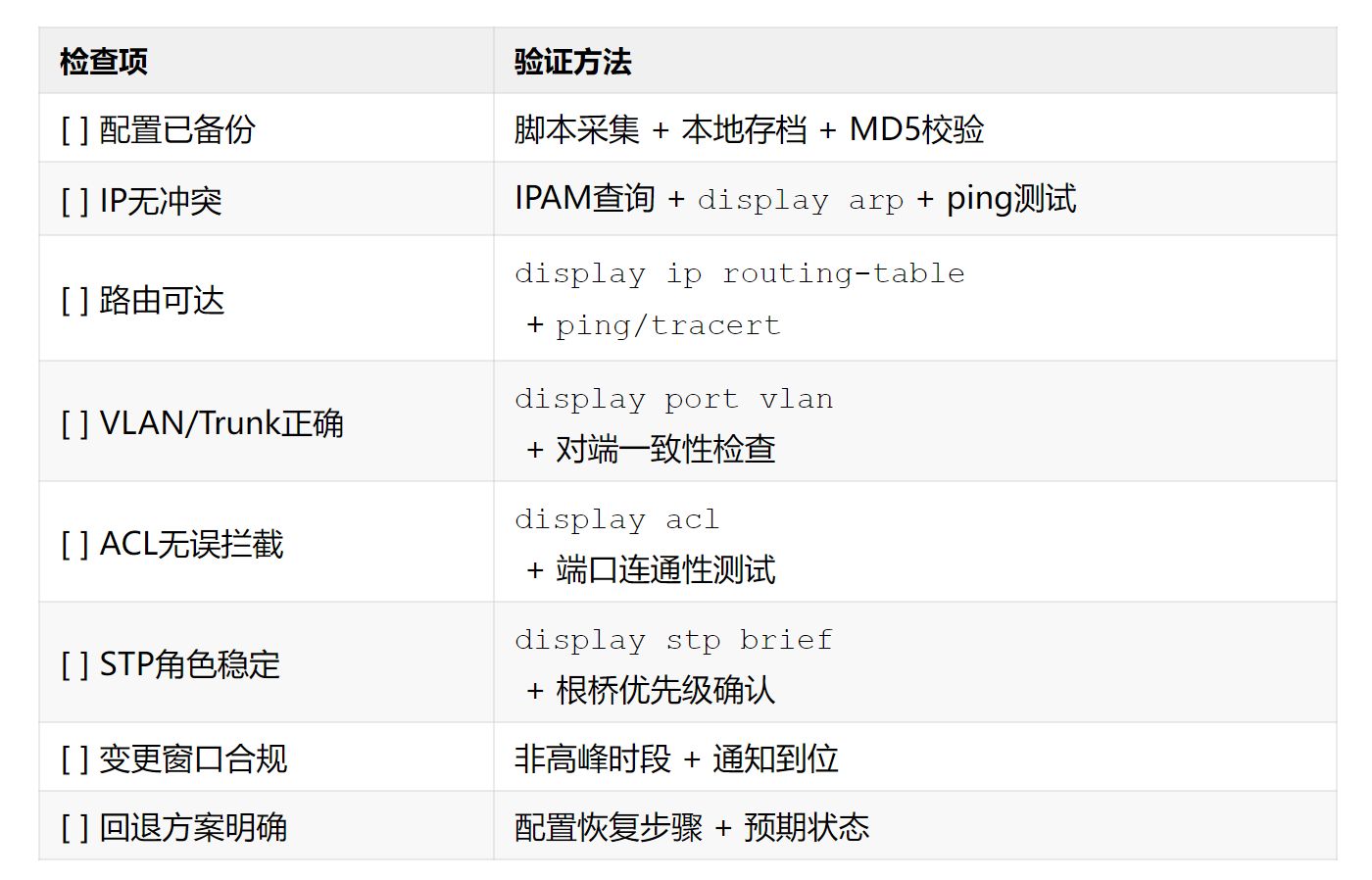 今天总结了网络变更前必须检查的7个关键环节,帮你规避高危风险,做到“上线不背锅”,让每一次变更都稳如泰山。