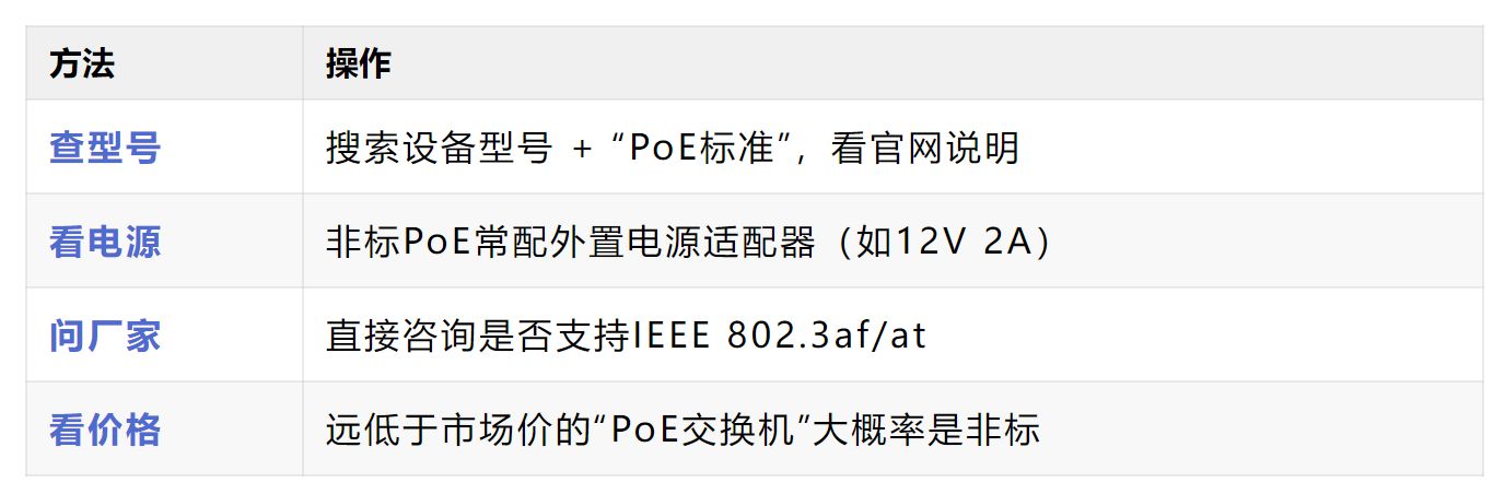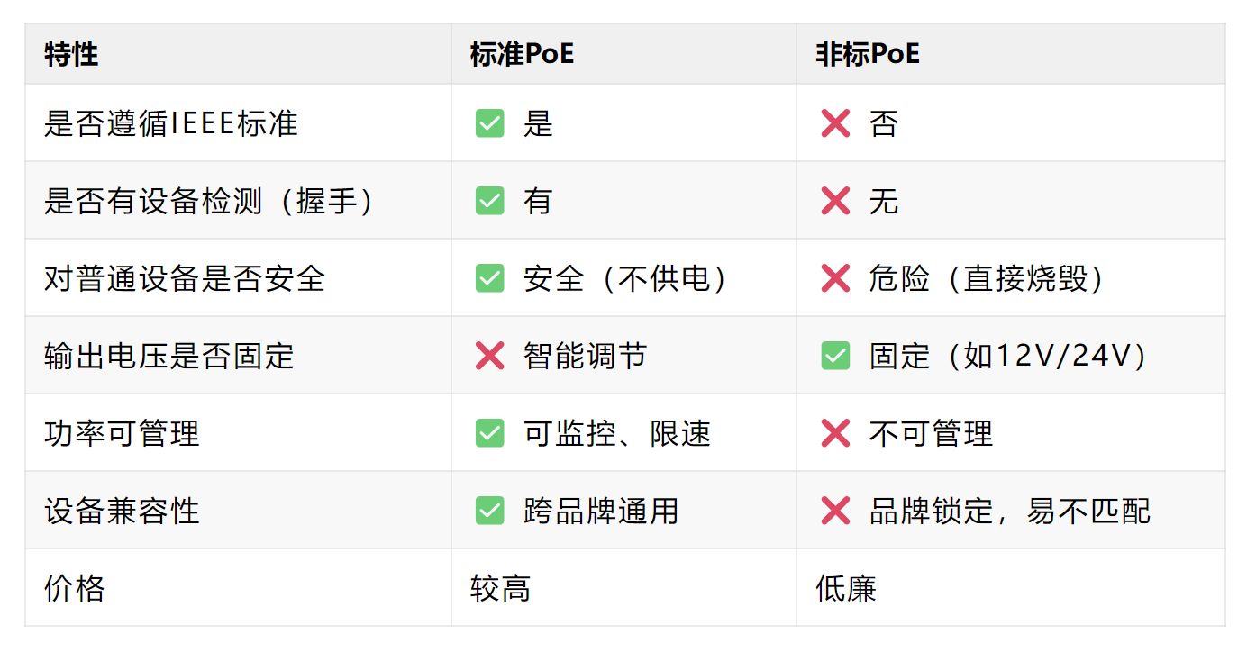 非标PoE(也称“无协商PoE”或“被动PoE”)没有检测机制