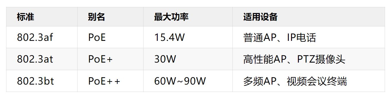 普通交换机虽不具备PoE供电能力,但通过PoE注入器或级联小型PoE交换机,可灵活、低成本地实现对无线接入点、IP电话等设备的供电。