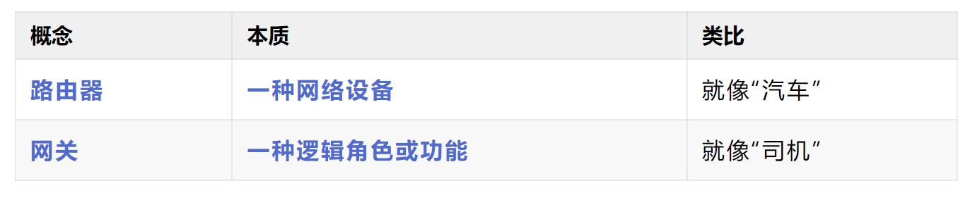 但司机也可以是火车、飞机的驾驶员——网关不一定由路由器担任。