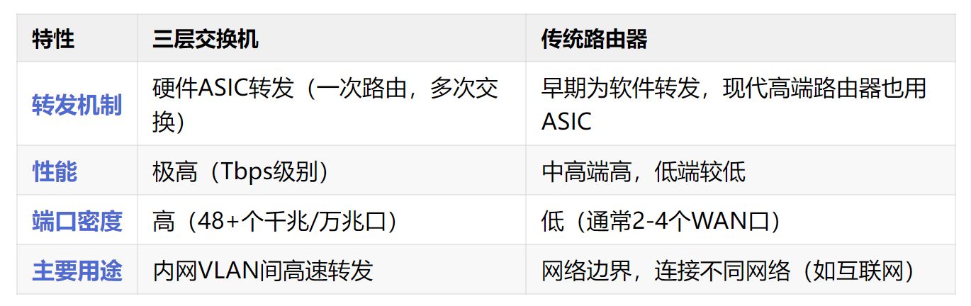 总结:三层交换机 ≠ 路由器,而是“专用加速器”