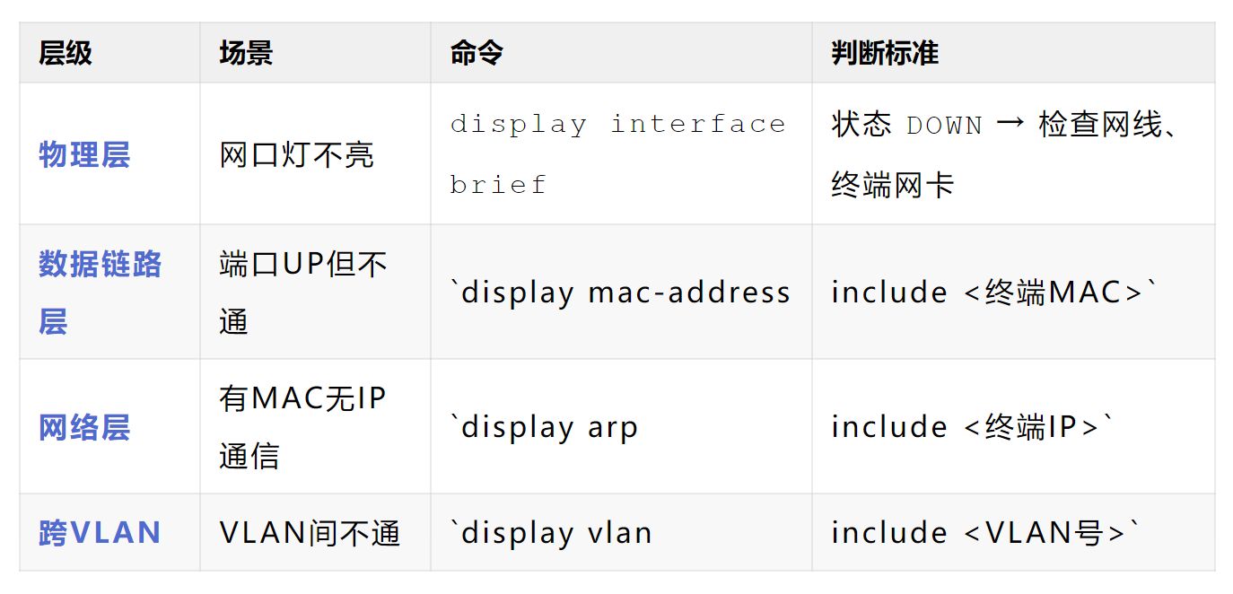 场景4:VLAN间路由不通 → 检查三层接口状态