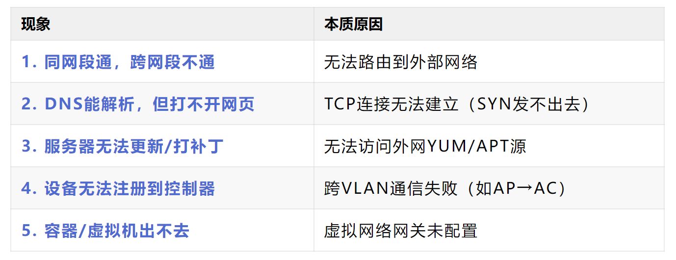 今天通过 5个真实排错场景,带你深入理解默认网关的作用,以及缺失时的典型表现。