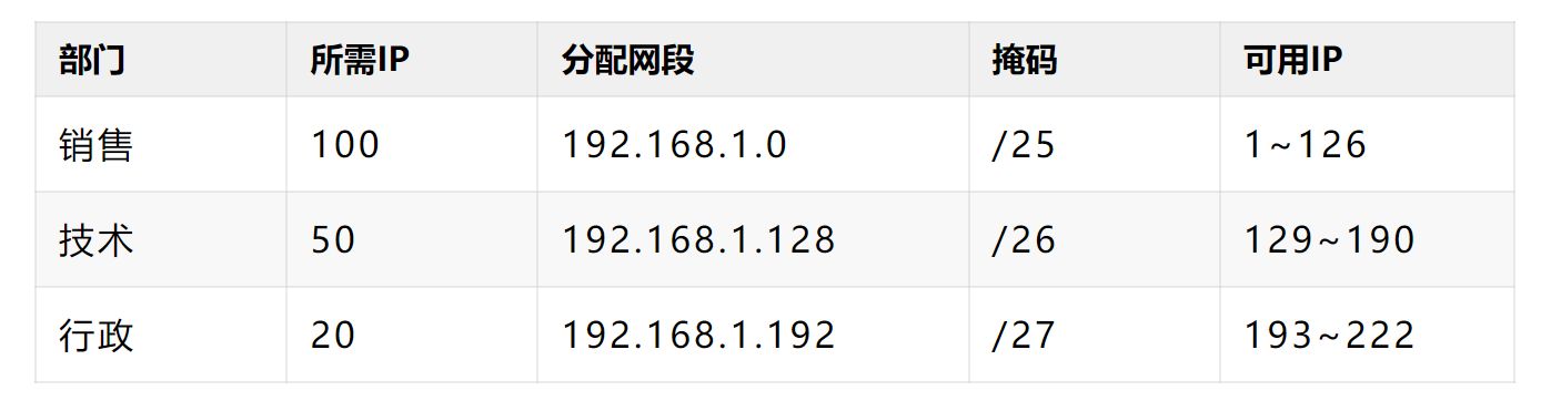 📌 记忆技巧: /24=255.255.255.0 /25=128, /26=192, /27=224, /28=240, /29=248, /30=252