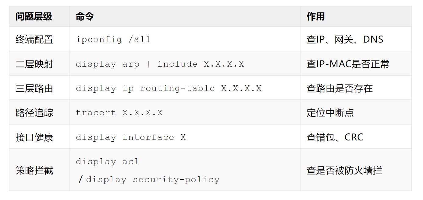 资深网工的思维是分层排查、证据驱动:从终端→网关→路由→策略,一步步收集证据,而非盲目重启。