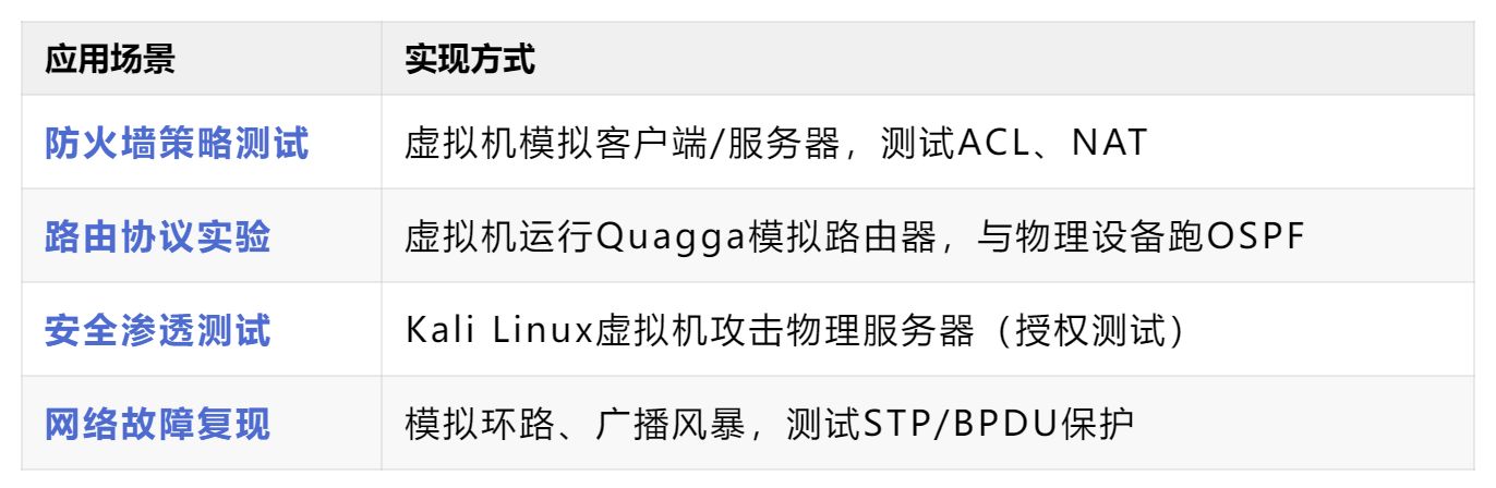 “想测防火墙策略,但没有足够物理服务器?” “搭建复杂网络拓扑,预算只够买一台交换机?” “VMware 里的虚拟机无法和物理设备通信?”