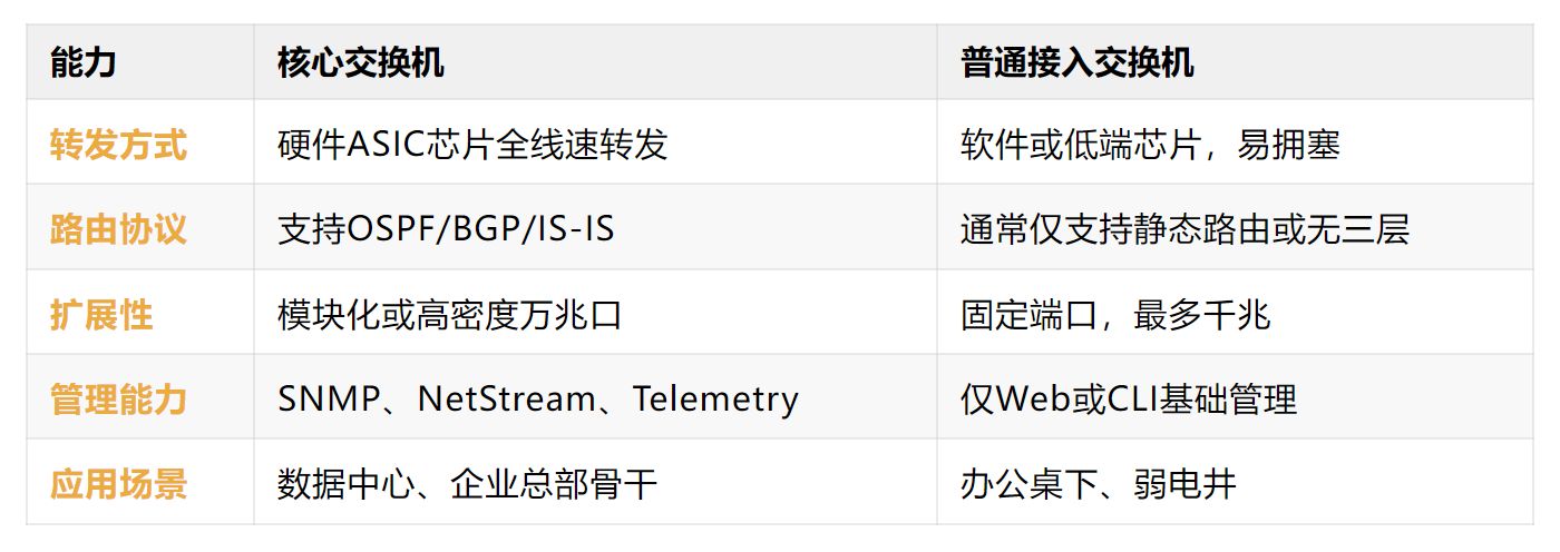 判断一台设备是否为核心,看的是它是否具备高速、可靠、智能、可扩展的能力,是否能在关键时刻扛住全网流量而不掉链子。