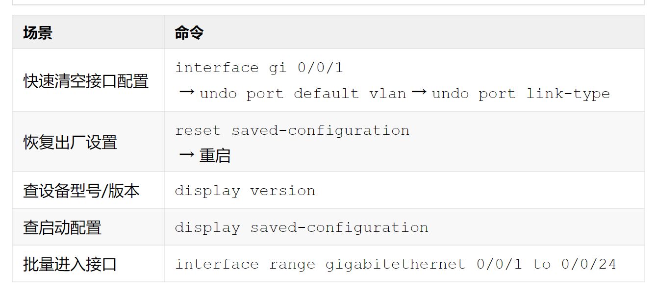 今天,我不讲原理,直接给你一张“华为交换机实战速查表”,按场景分类,复制即用。