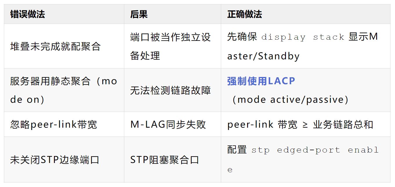 “两台交换机做了堆叠,服务器用双网卡分别接在不同成员上,配置了Eth-Trunk,结果聚合不生效,甚至丢包严重!”
