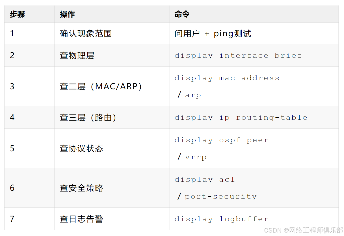 今天给大家整理了华为数通设备(交换机/路由器)最常用的 15个排错标准操作流程。