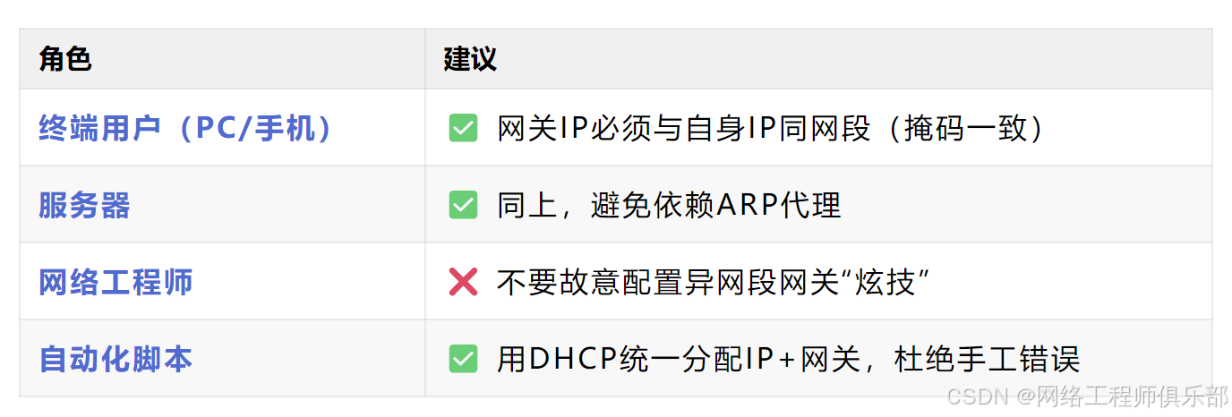 📌 这就是“网关必须同网段”说法的来源——基于标准主机行为。