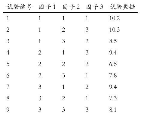 首先,确保你的数据是正交试验设计的结果。数据格式应包含试验编号、各因子的水平编号以及试验数据。例如:
