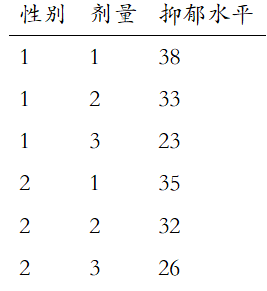 案例:研究不同性别和不同剂量新药对抑郁水平的影响。